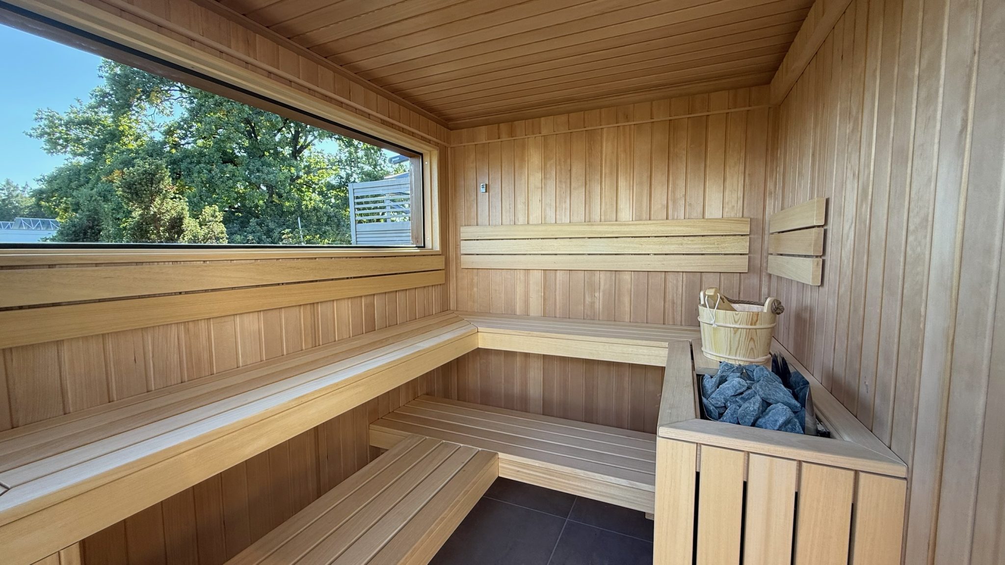 - Hochwertige Saunaholzbeplankung aus Rotzeder